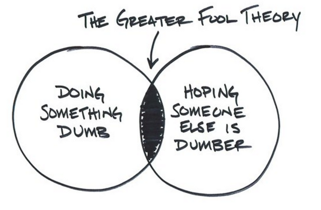 To me, the whole thing was a great example of the greater fool theory. The person who buys crypto at a certain price is a ‘fool’ — the person who buys it off them for more is the ‘greater fool’. So ‘greater fools’ become ‘fools’, new ‘greater fools’ come along, and the cycle repeats.